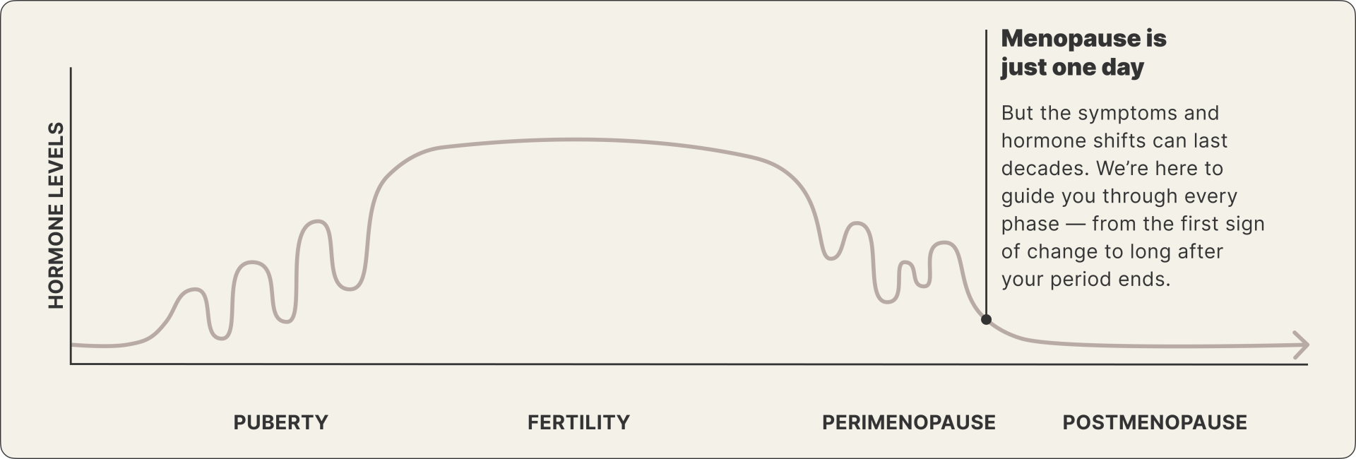 Starts after menopause, and lasts the rest of your life. Hormones remain low without intervention. Health risks shift toward bone, brain, and metabolic decline — but decline isn’t inevitable.